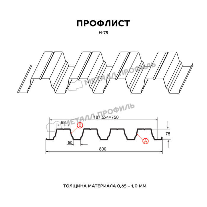 Профлист Металл Профиль Н-75 0,8 Цинк Бесцветный Показать информацию